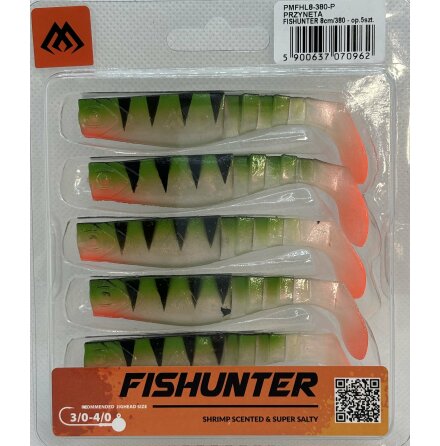 Fishunter är en jigg gjord av ett högelastiskt material. Jiggen har en väldigt aggressiv gång, även när den sjunker mot botten. Framdelen på jiggen är formad så den omsluter jigghuvudet. Finns i många fina färger.
